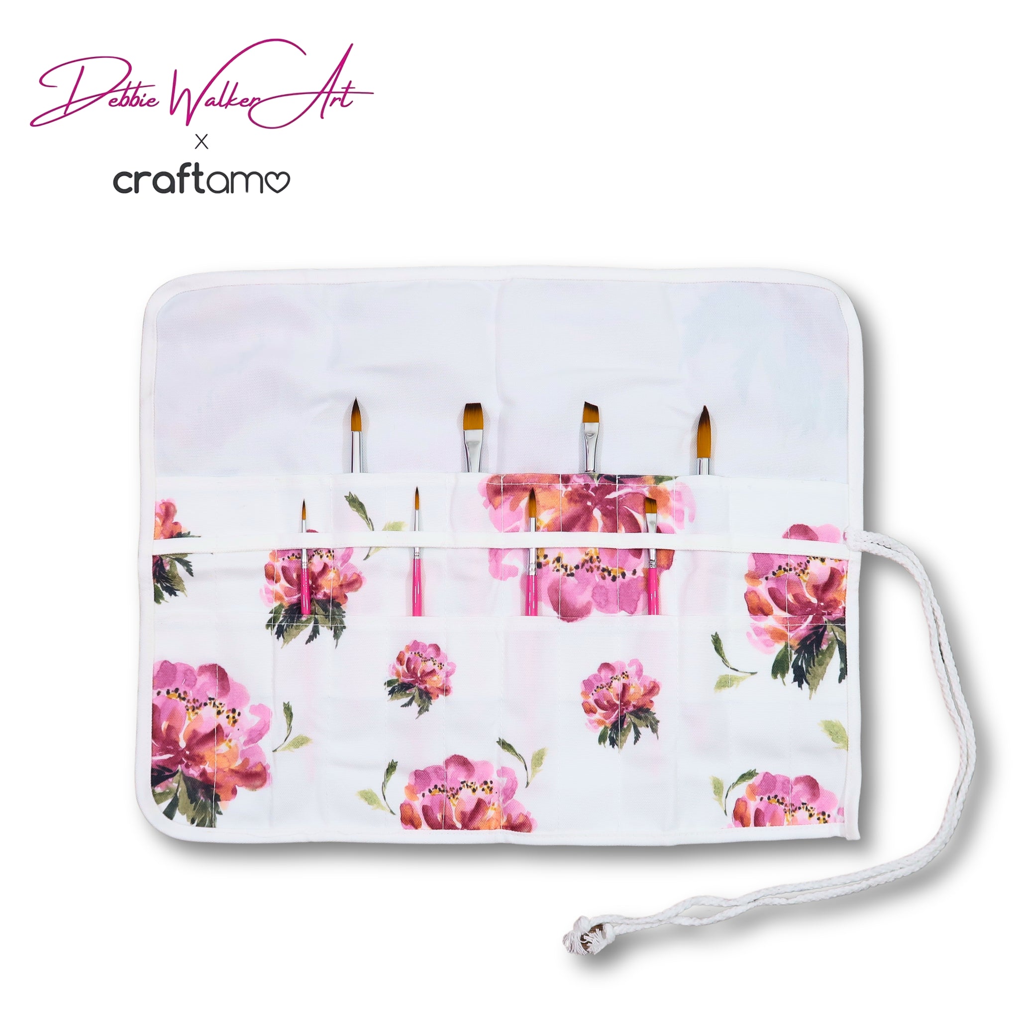 Keep your brushes beautifully organised with the Debbie Walker X Craftamo Brush Case. Adorned with Debbie’s exclusive artwork, this elegant fabric case blends functionality with artistic charm, a must-have for painters who value both creativity and order.