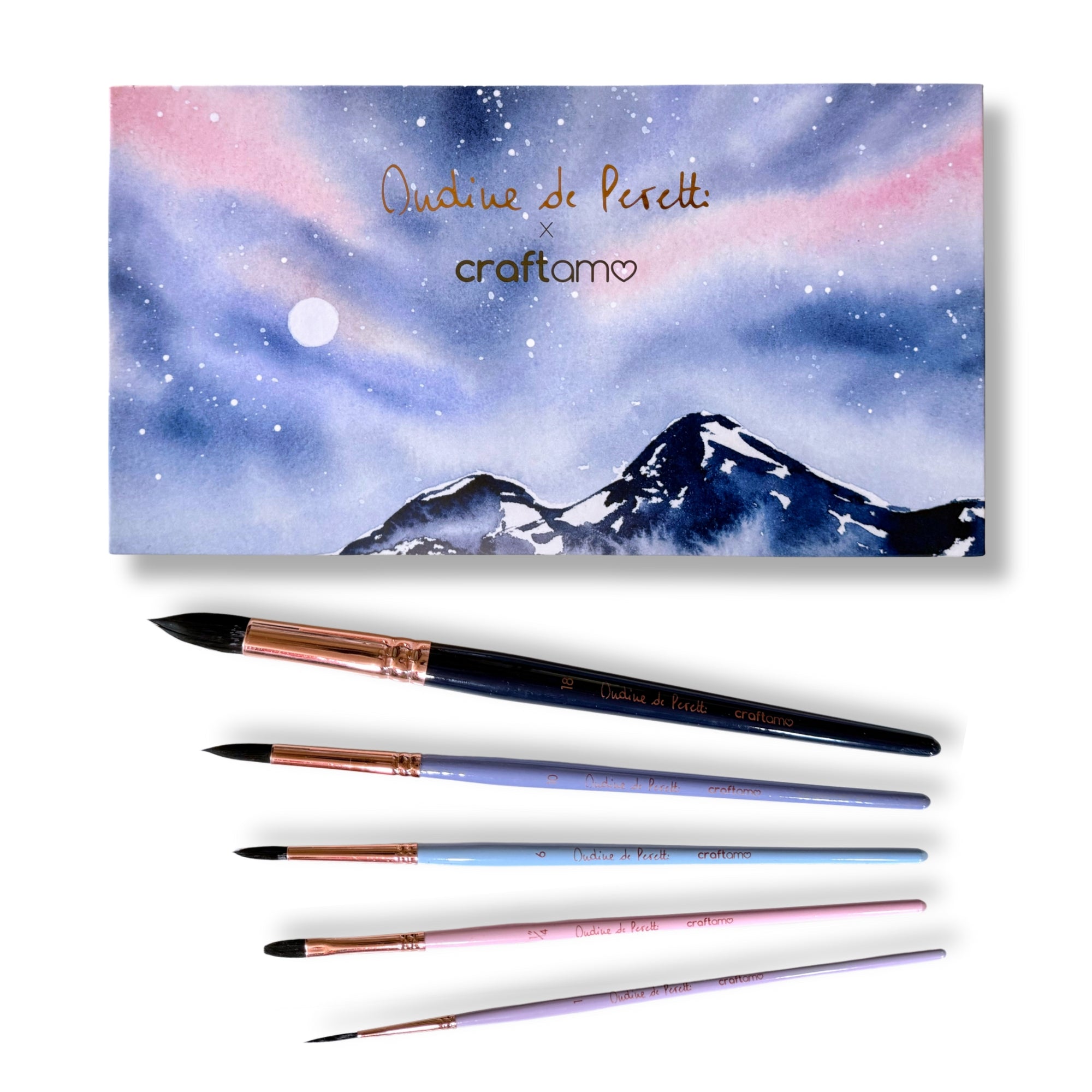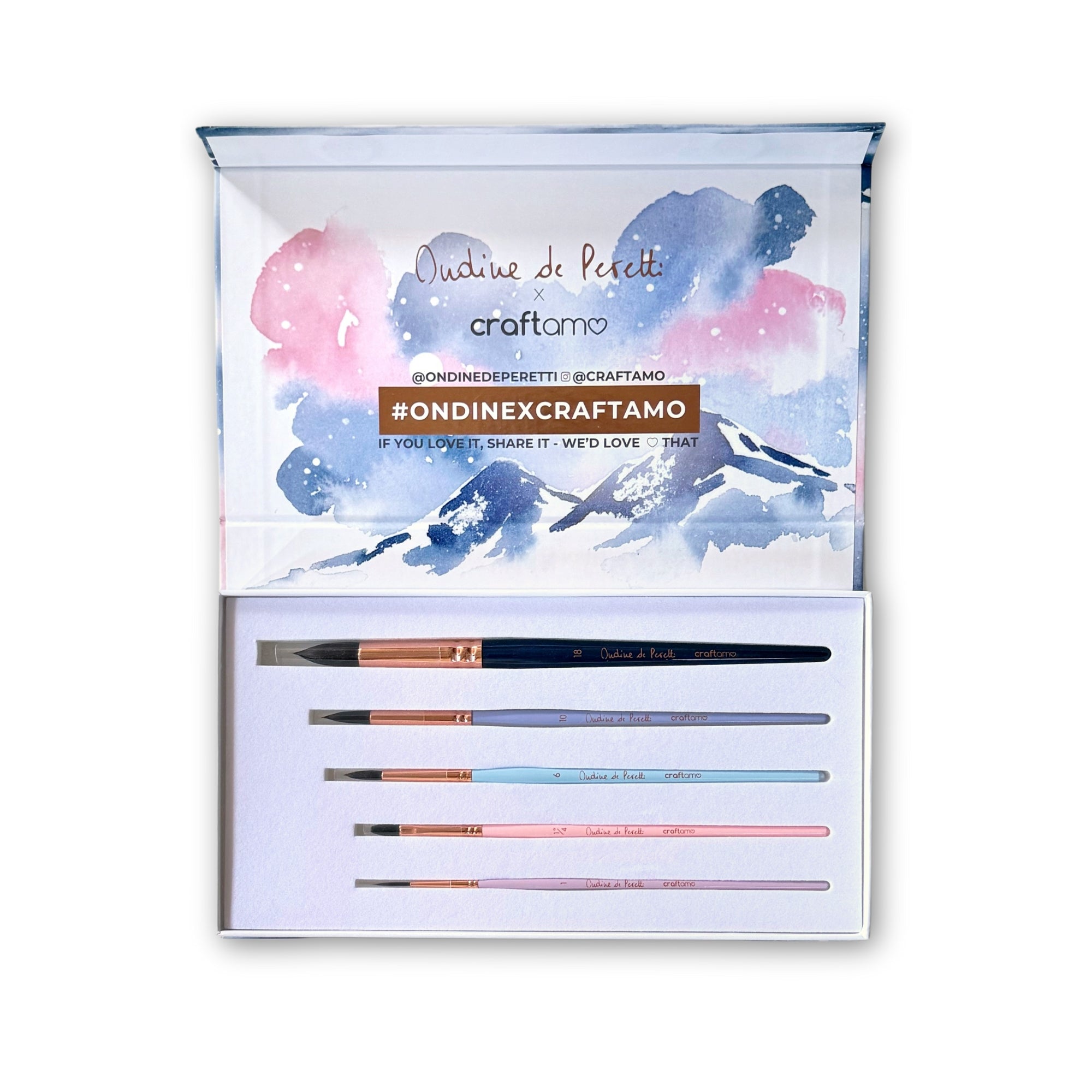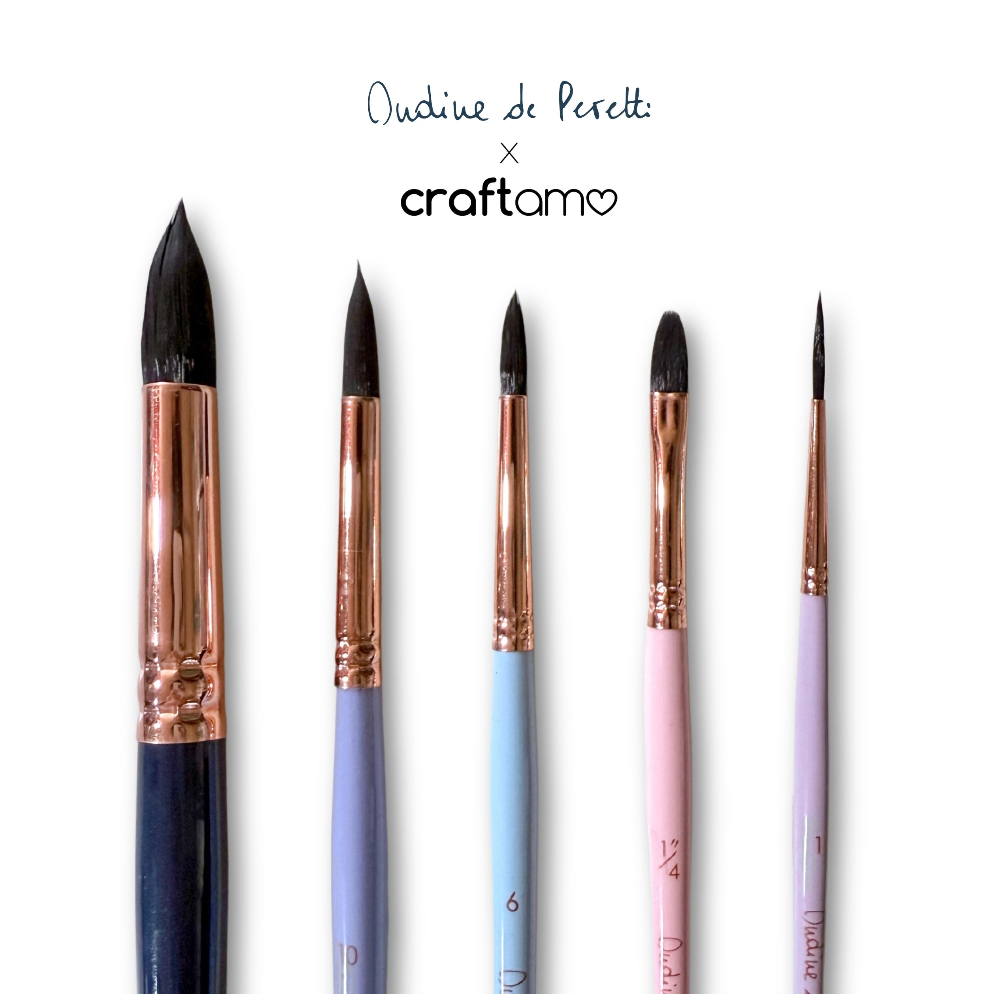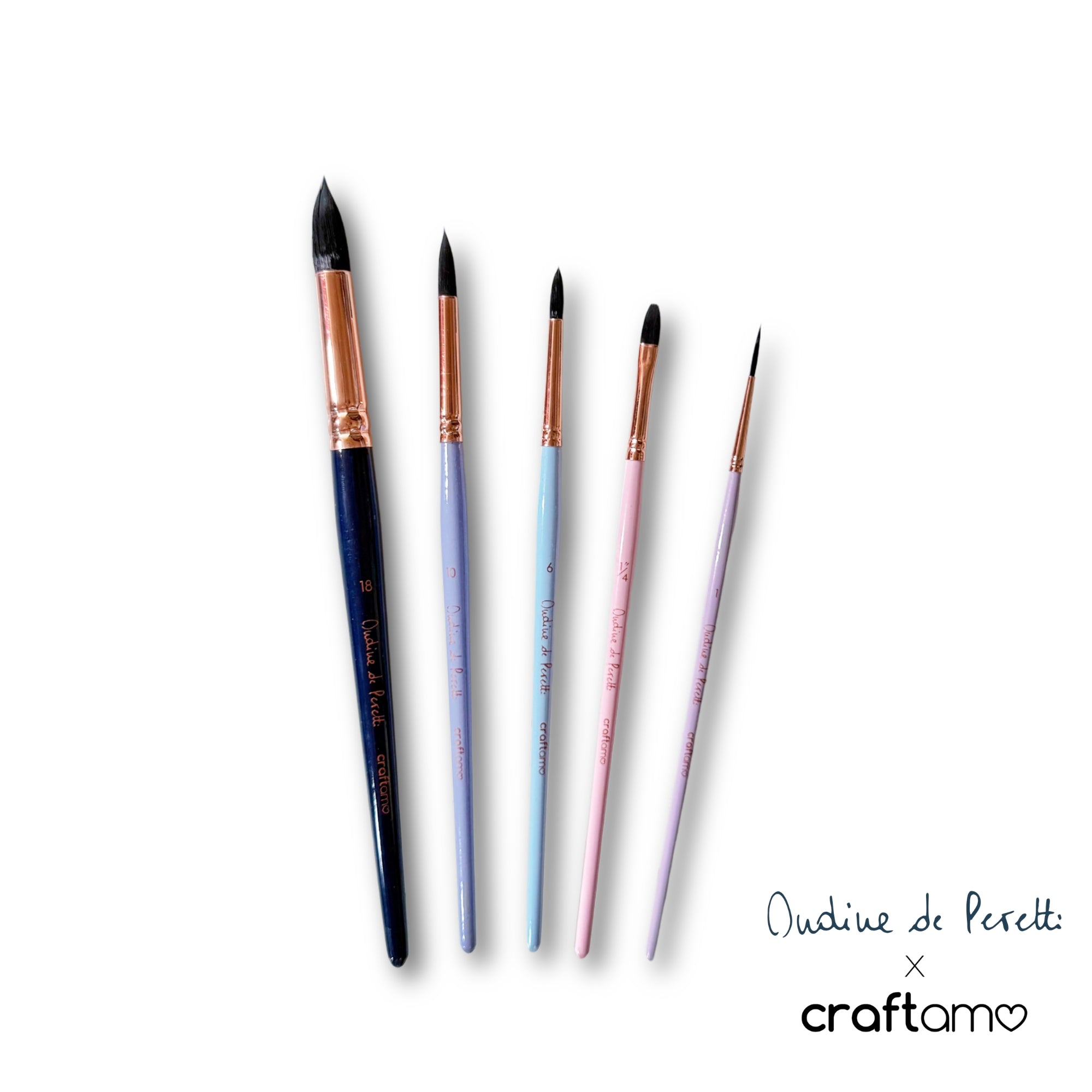 The Ondine de Peretti X Craftamo limited edition brush set features five of Ondine’s essential brush shapes and sizes, each personally customized by Ondine to reflect her artistic philosophy of simplicity, gesture, and colour. Every brush is beautifully housed in an Ondine de Peretti original gift box, making this set both functional and inspiring.