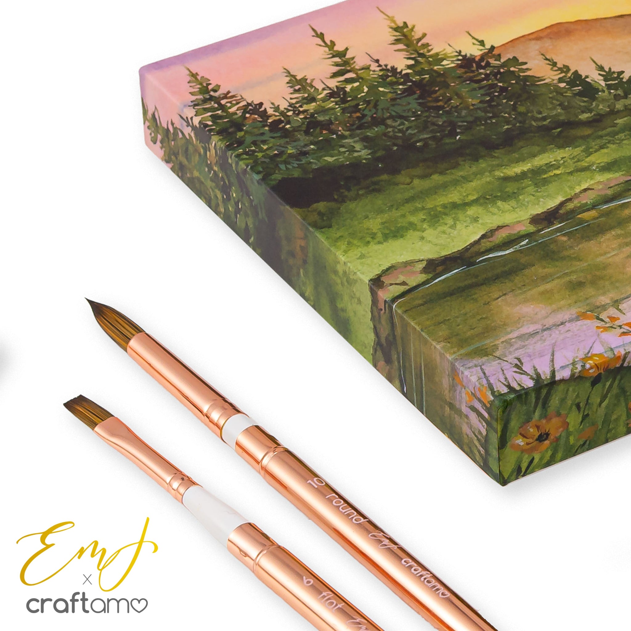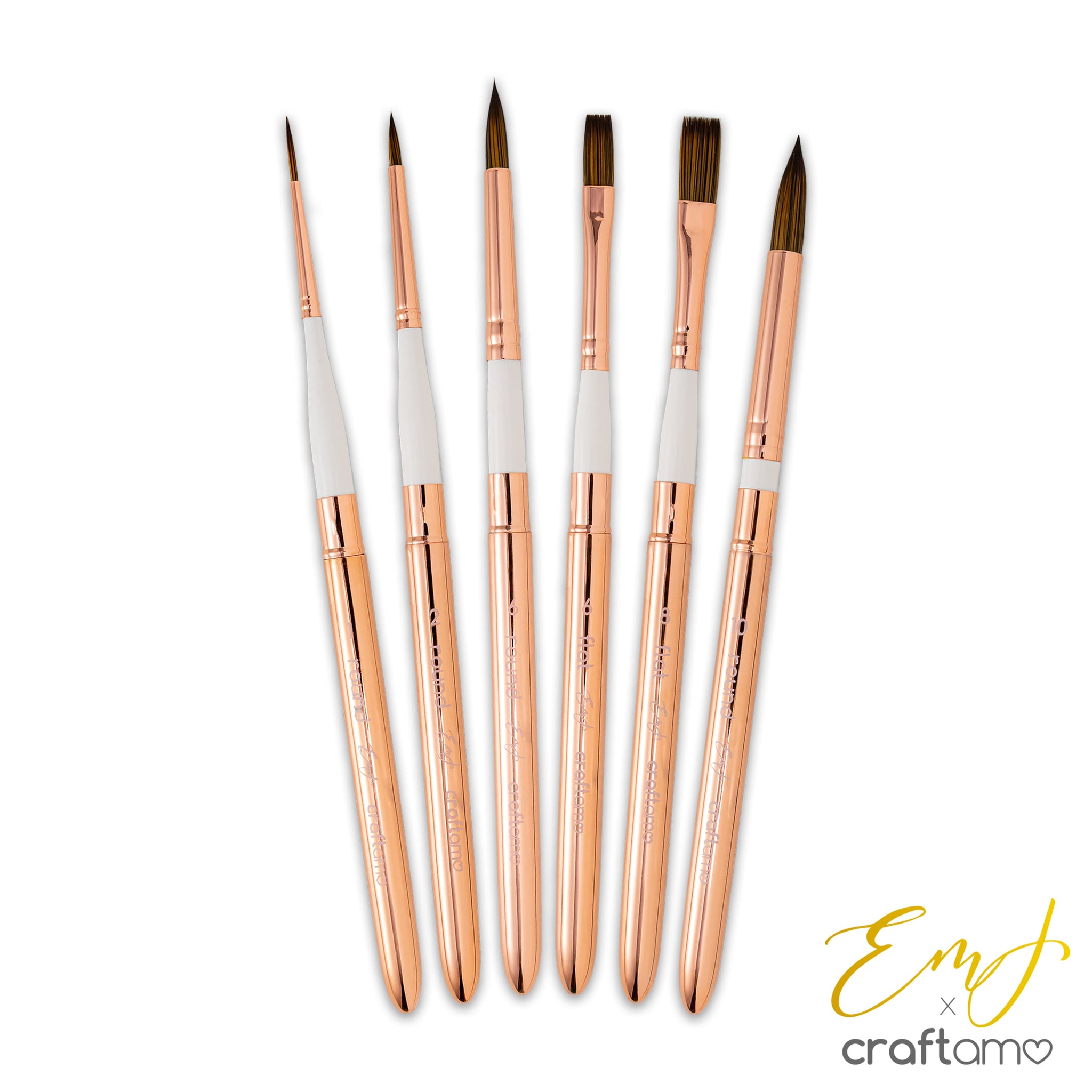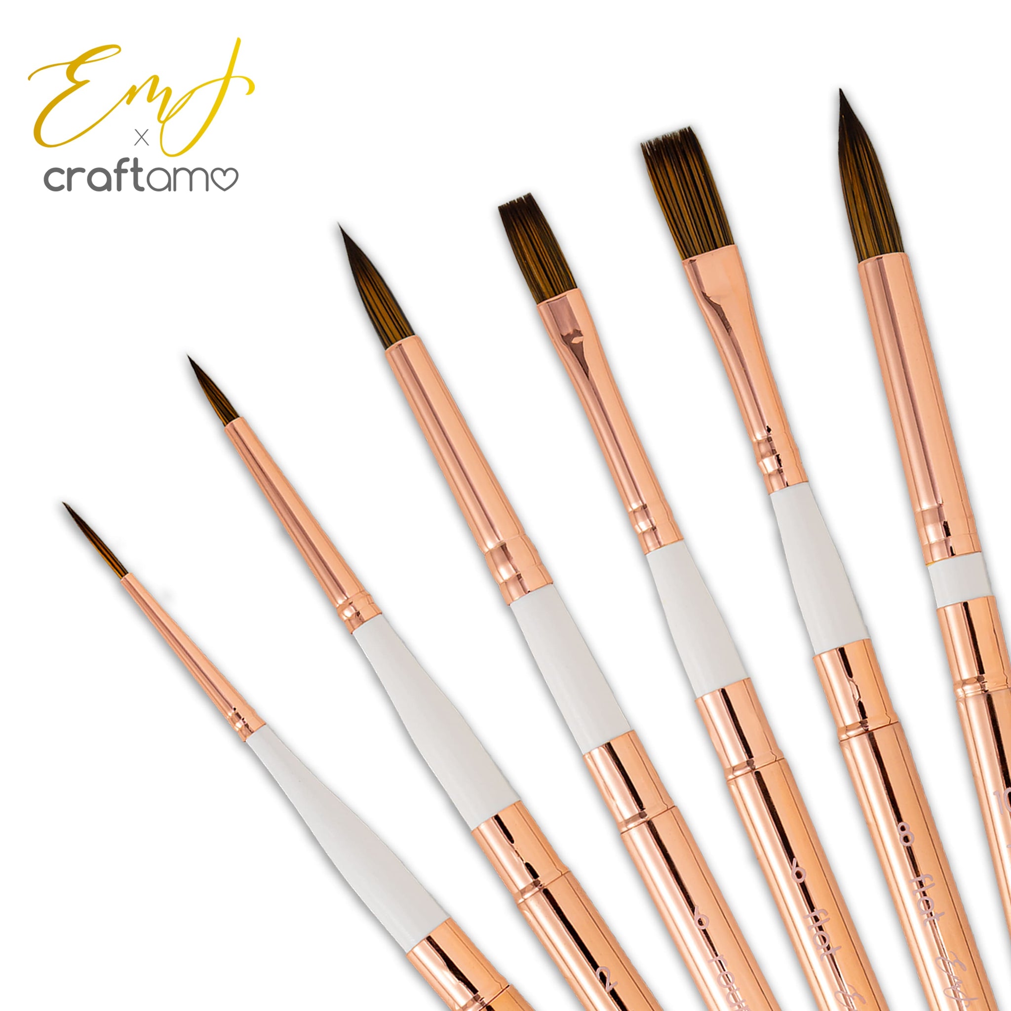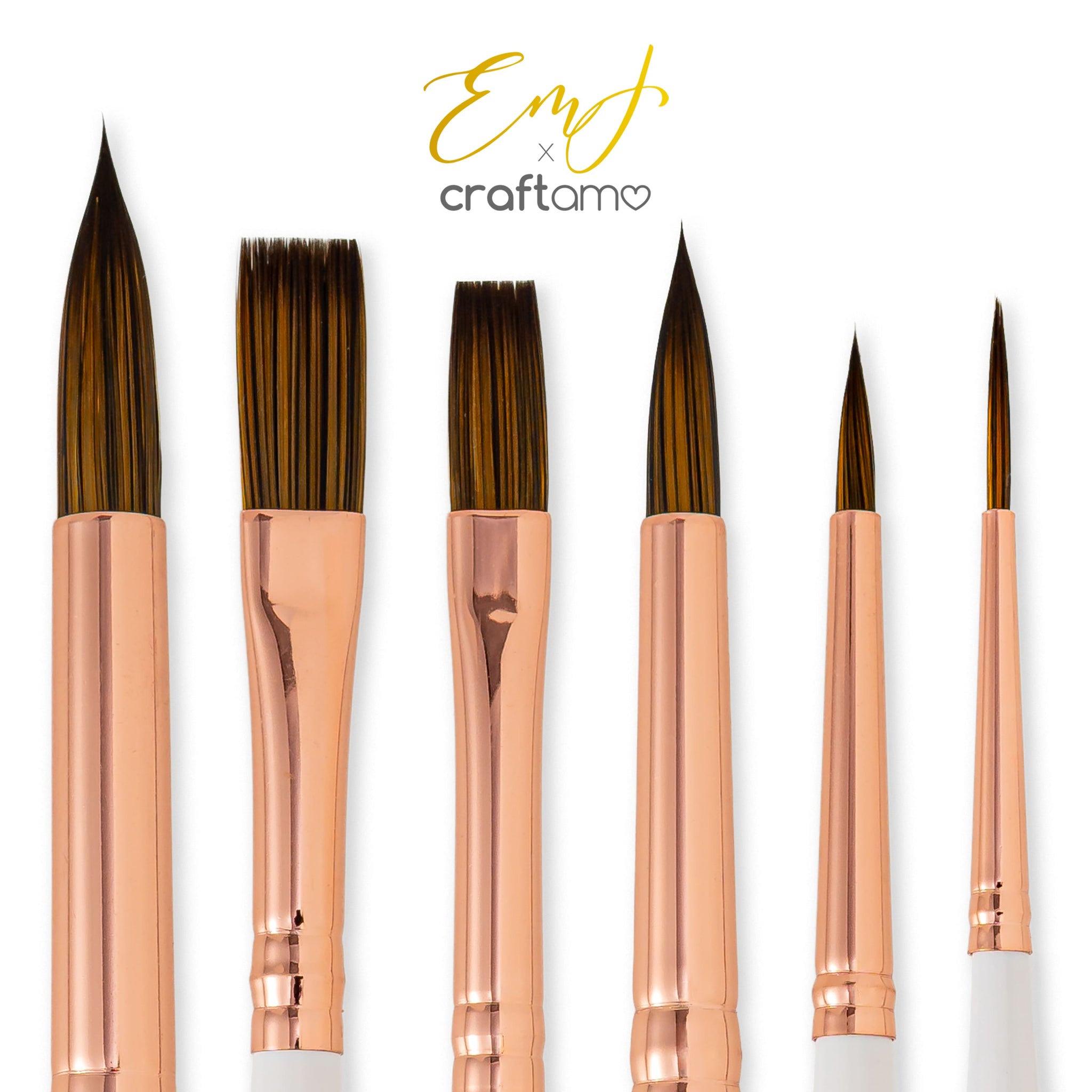 The Emma Lefebvre X Craftamo Limited Edition Travel Brush Collection is designed for artists who are always on the move. This set includes six of Emma's favourite brush shapes and sizes, crafted to deliver exceptional performance no matter where your creativity takes you.