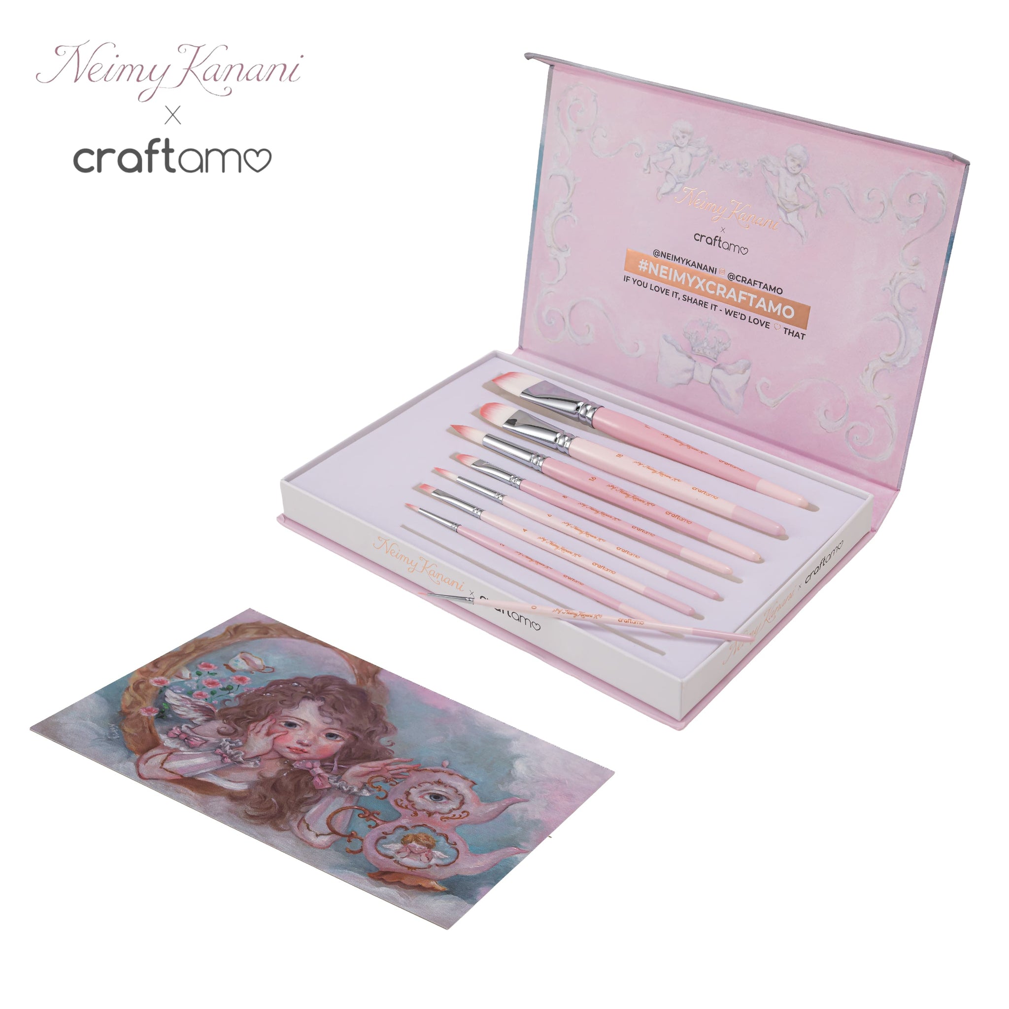 Housed in a collectible, custom-illustrated box by Neimy herself, this limited edition brush set is both a functional tool and a beautiful keepsake. Ideal for artists who create from feeling, memory, and mood.