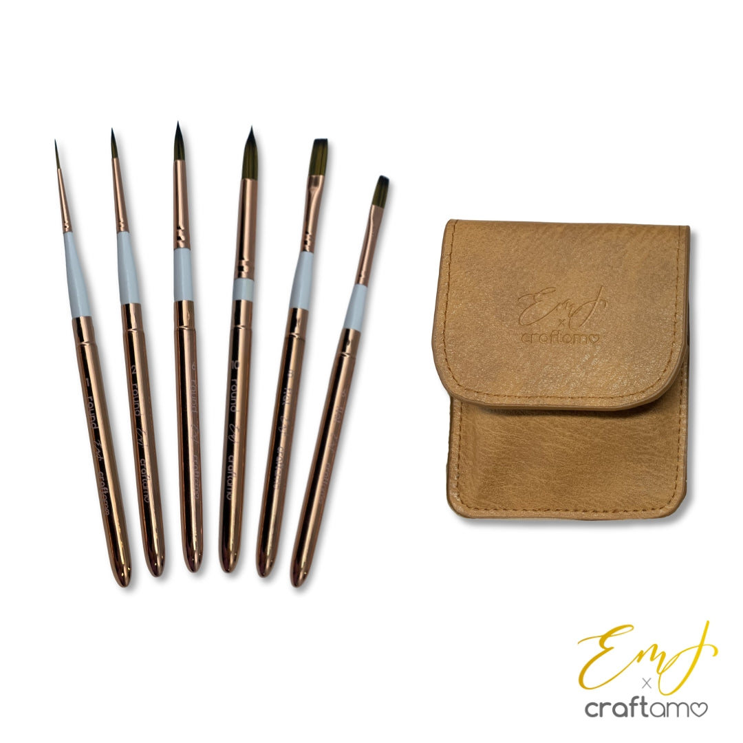 The Emma Lefebvre X Craftamo Limited Edition Travel Brush Collection is designed for artists who are always on the move. This set includes six of Emma's favourite brush shapes and sizes, crafted to deliver exceptional performance no matter where your creativity takes you.