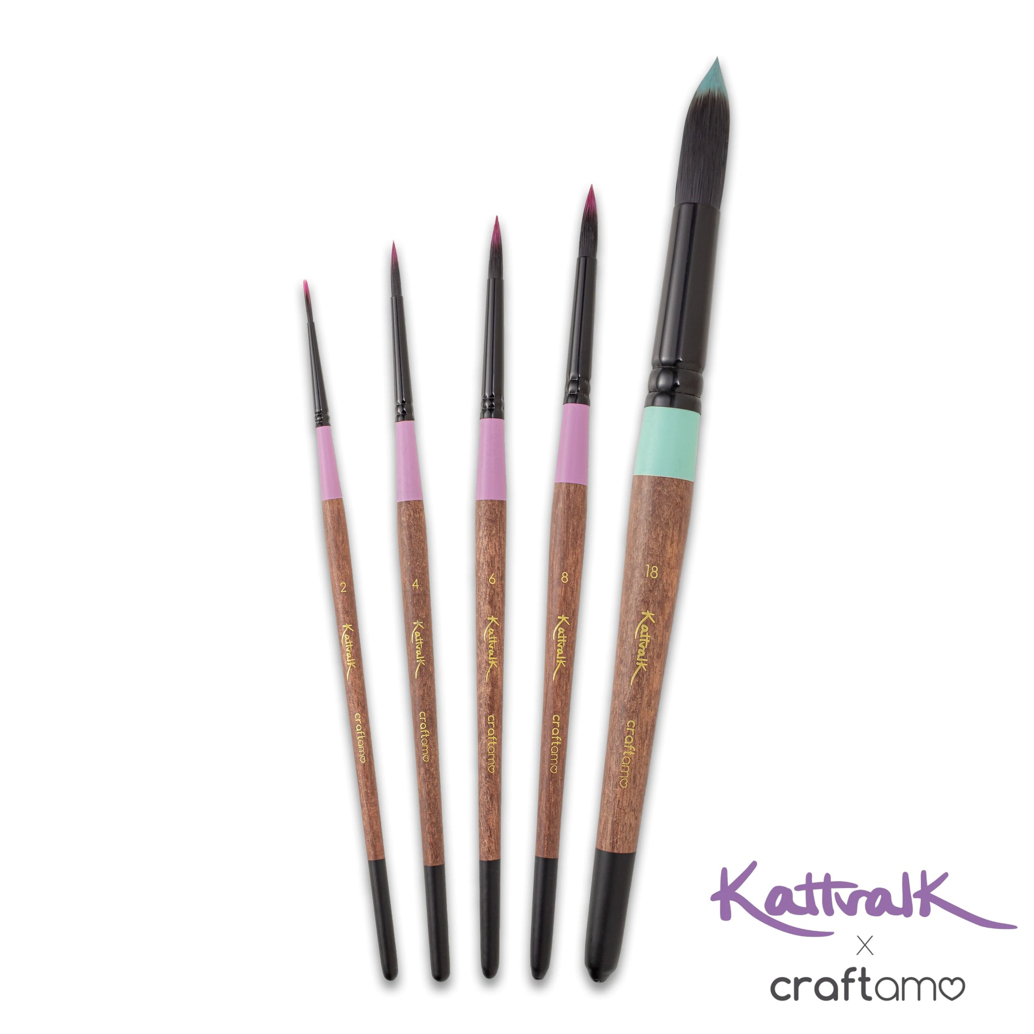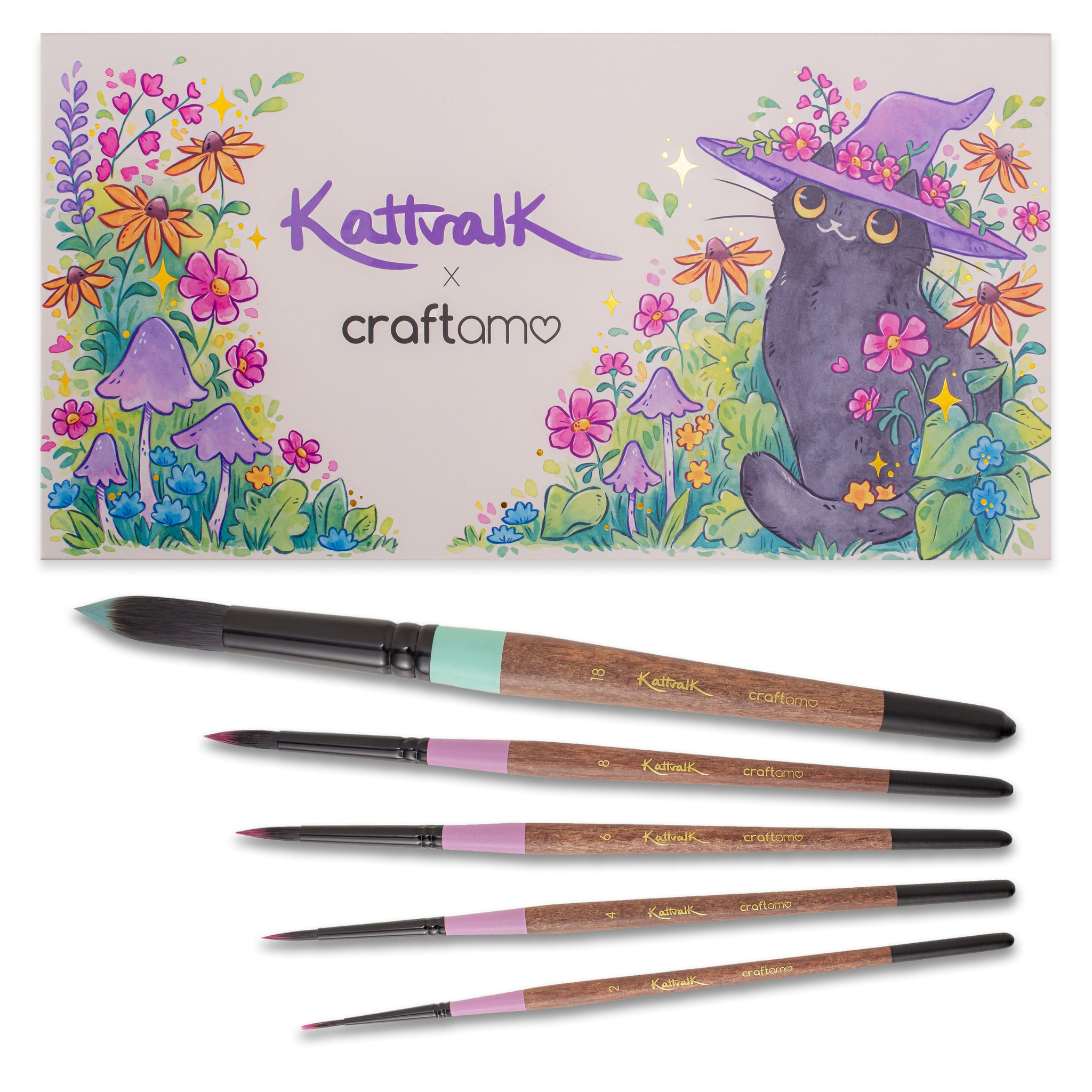Bring your ideas to life with the same brushes Marie reaches for in her own studio. The Kattvalk X Craftamo Limited Edition Brush Set is an exclusive 5-piece set was carefully designed by Marie herself, combining her go-to brushes into one versatile collection perfect for watercolour, gouache, and acrylic painting.