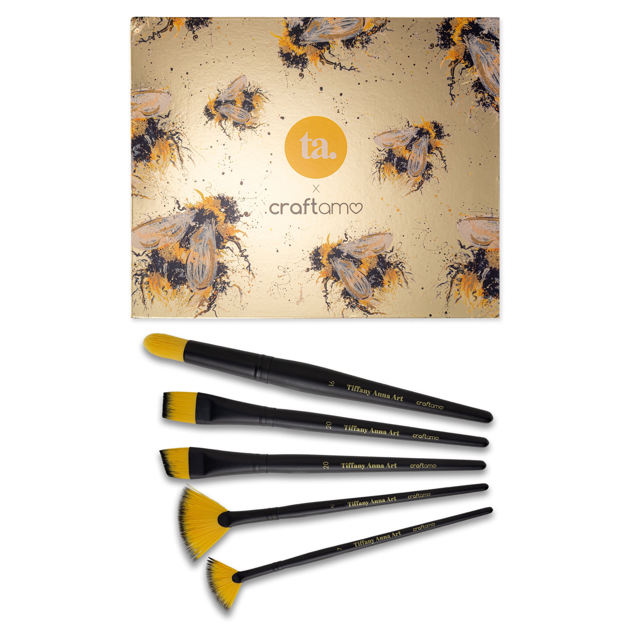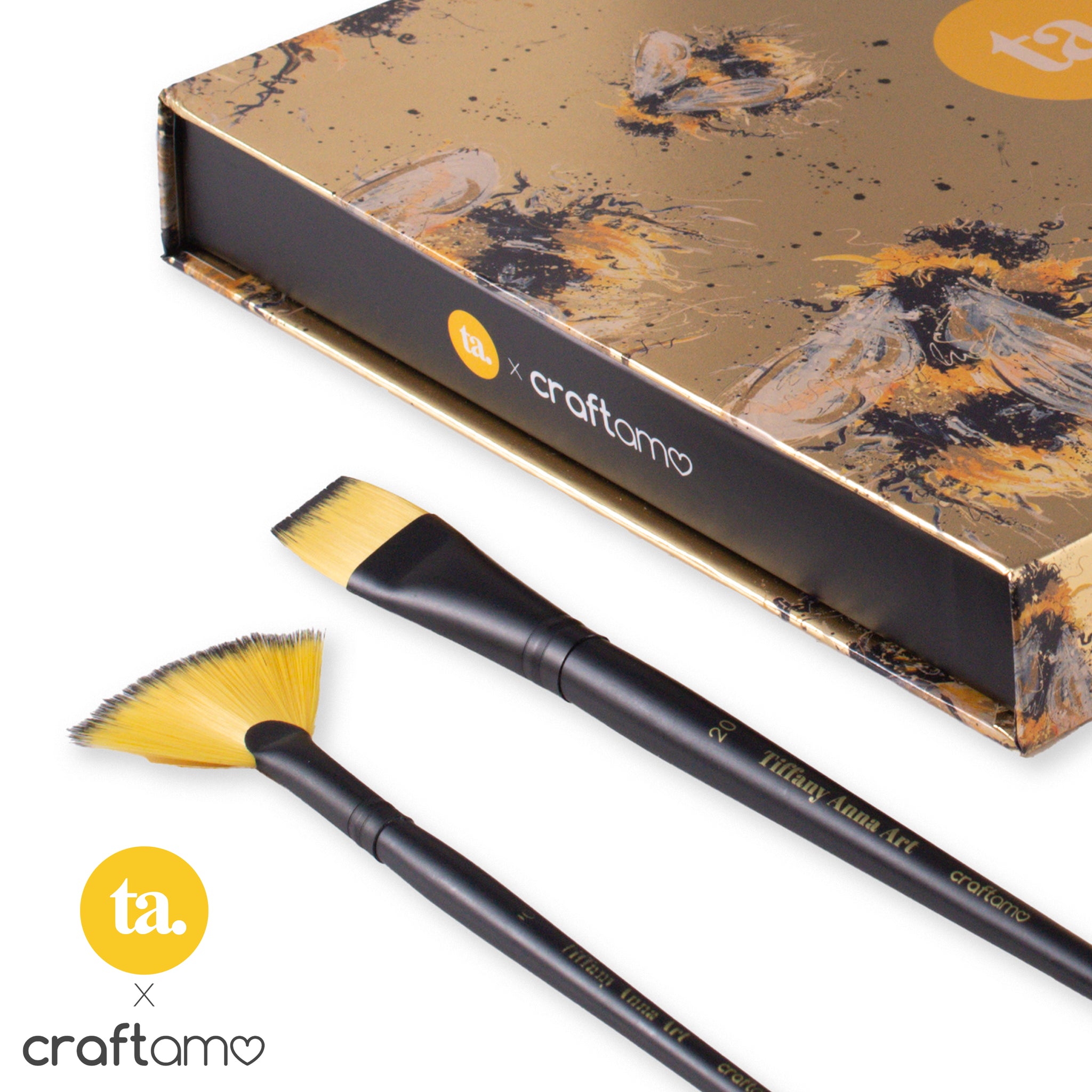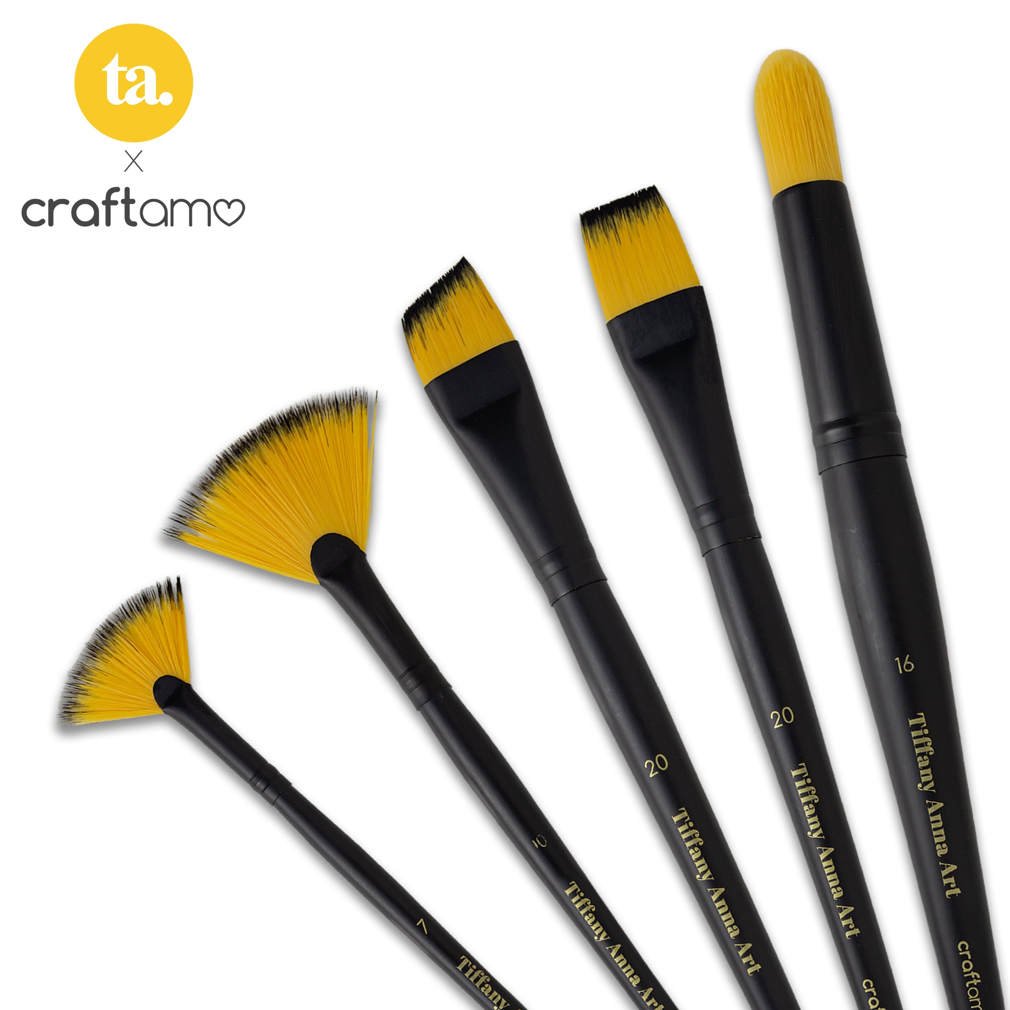 The Tiffany Anna Art X Craftamo limited edition brush set features five of Tiffany's favorite brush shapes and sizes, each personally customized by Tiffany herself and elegantly presented in a Tiffany Anna Art original gift box.